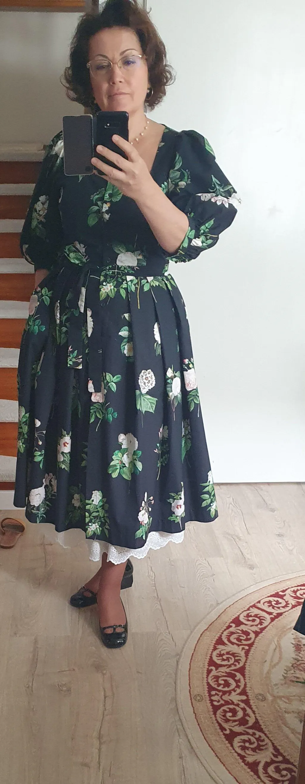 Rochia este superbă, un vis, deosebită, atent croita, finisaje impecabile, imprimeu feminin.