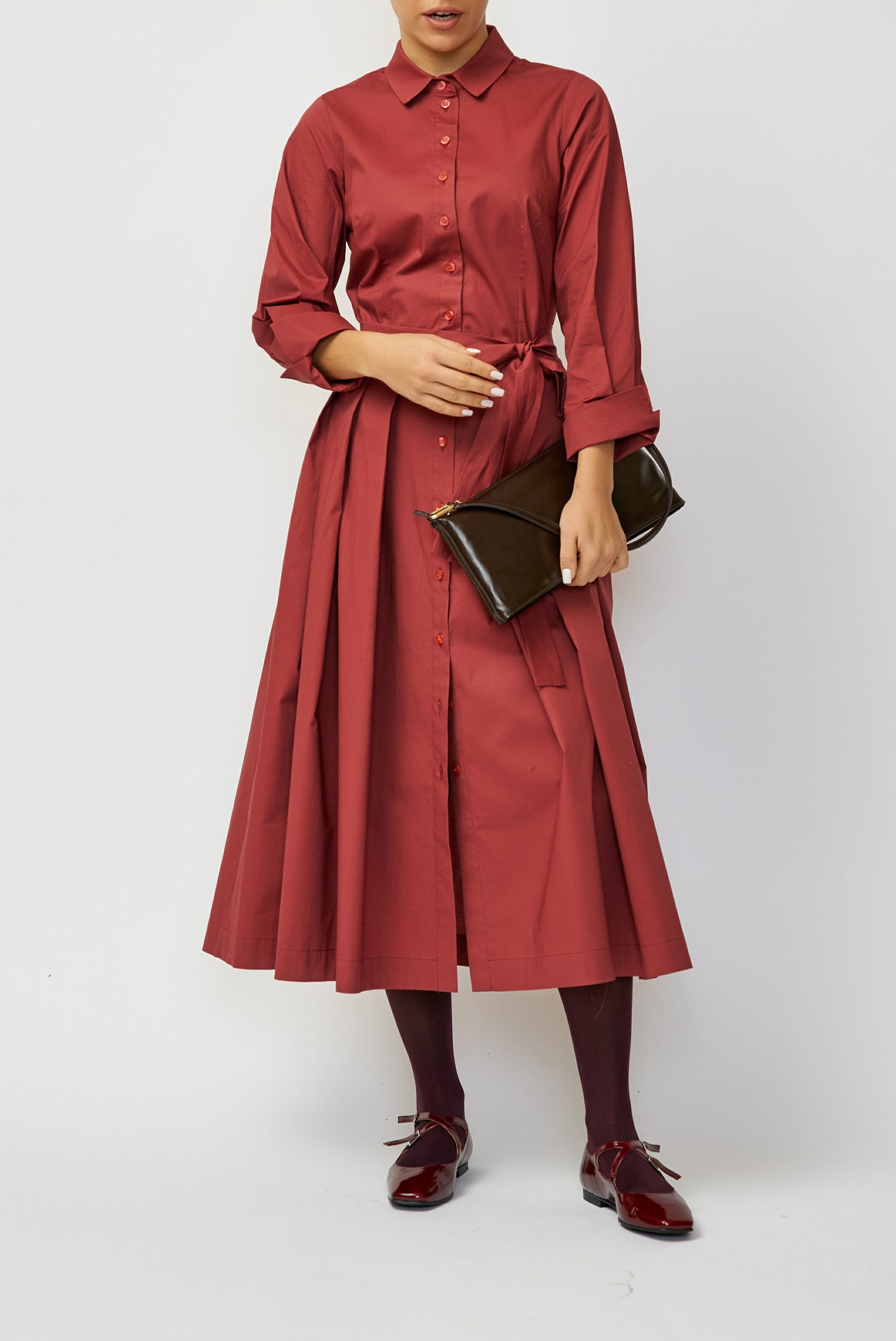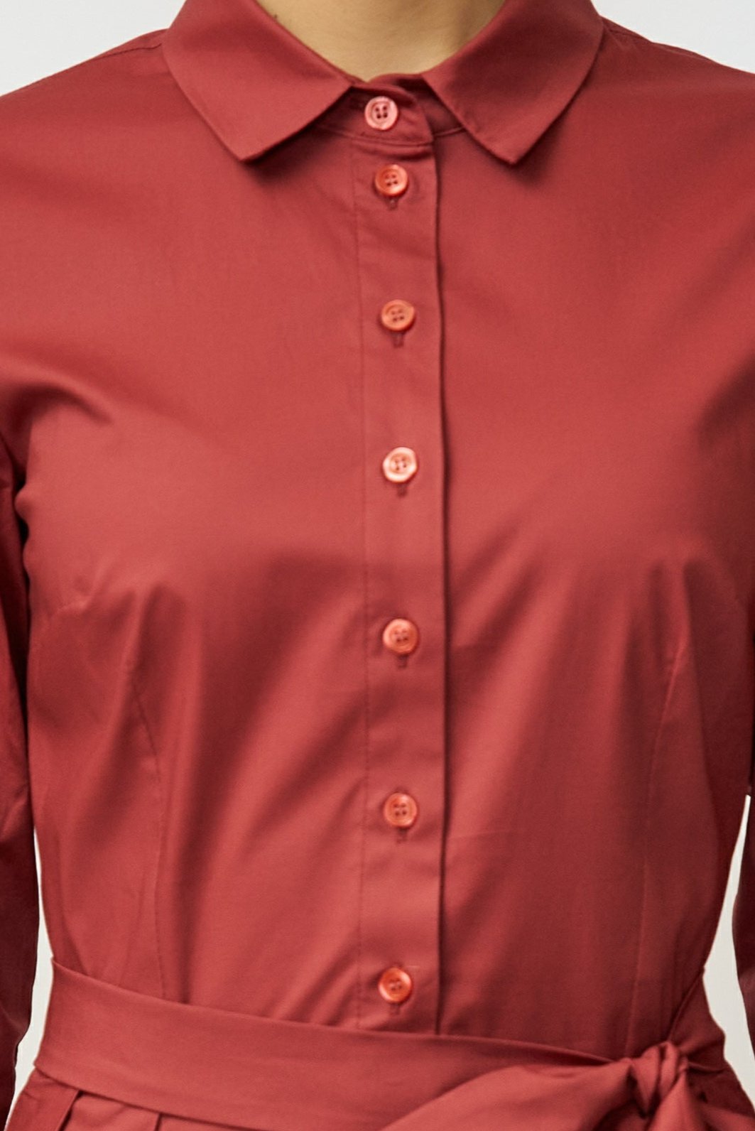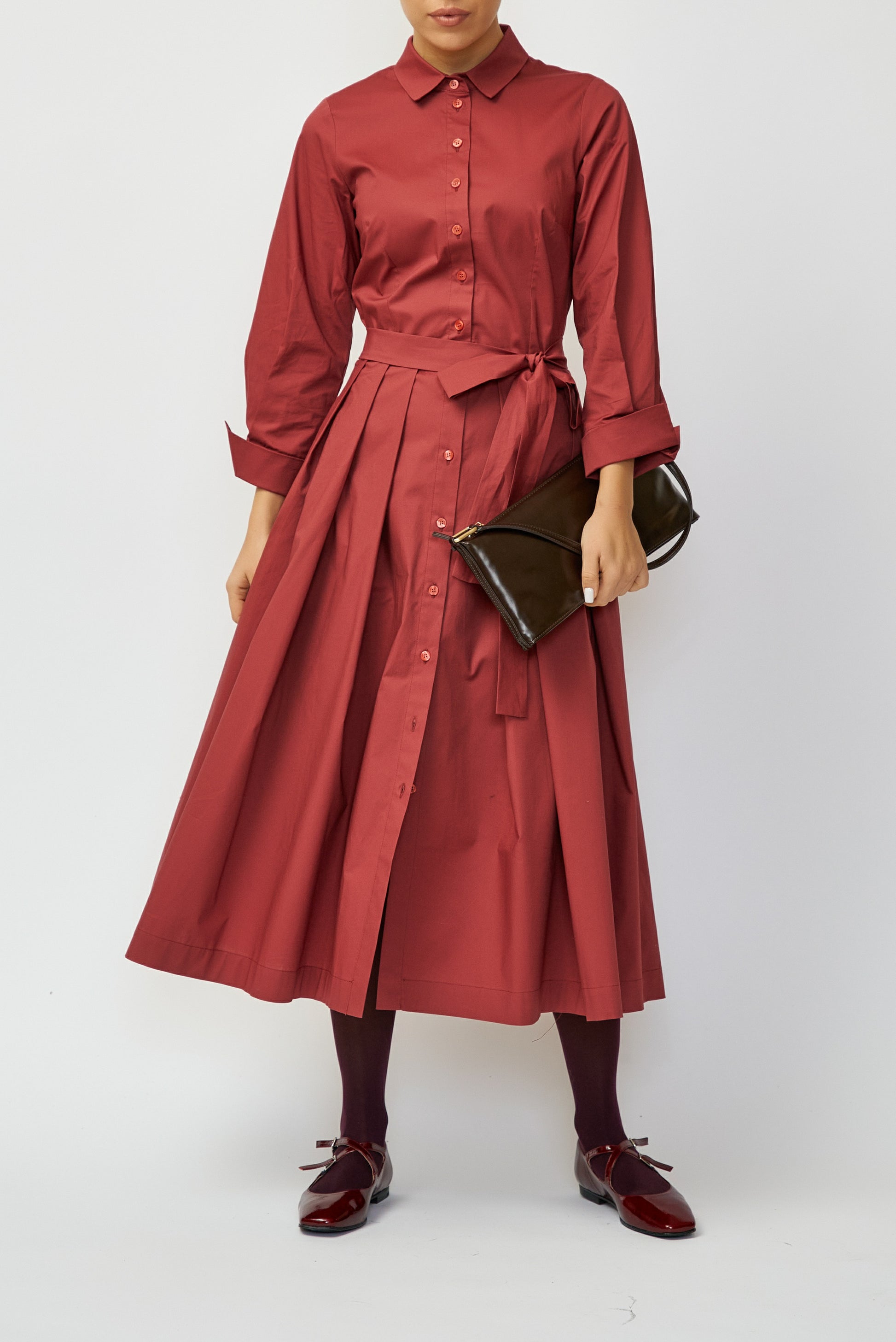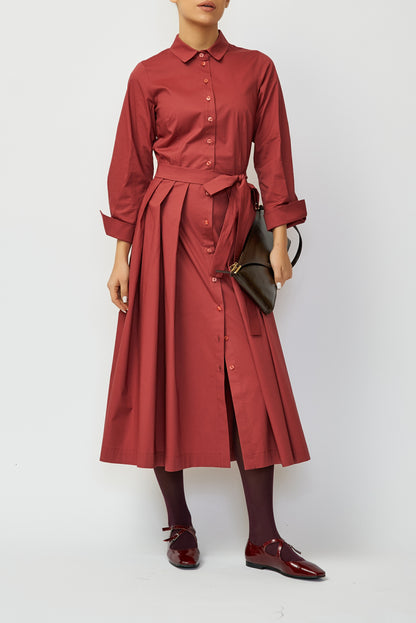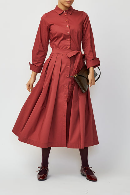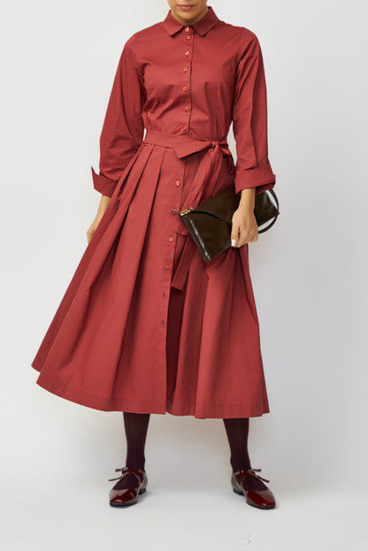 Midi Shirt Dress in Poplin, Grena
