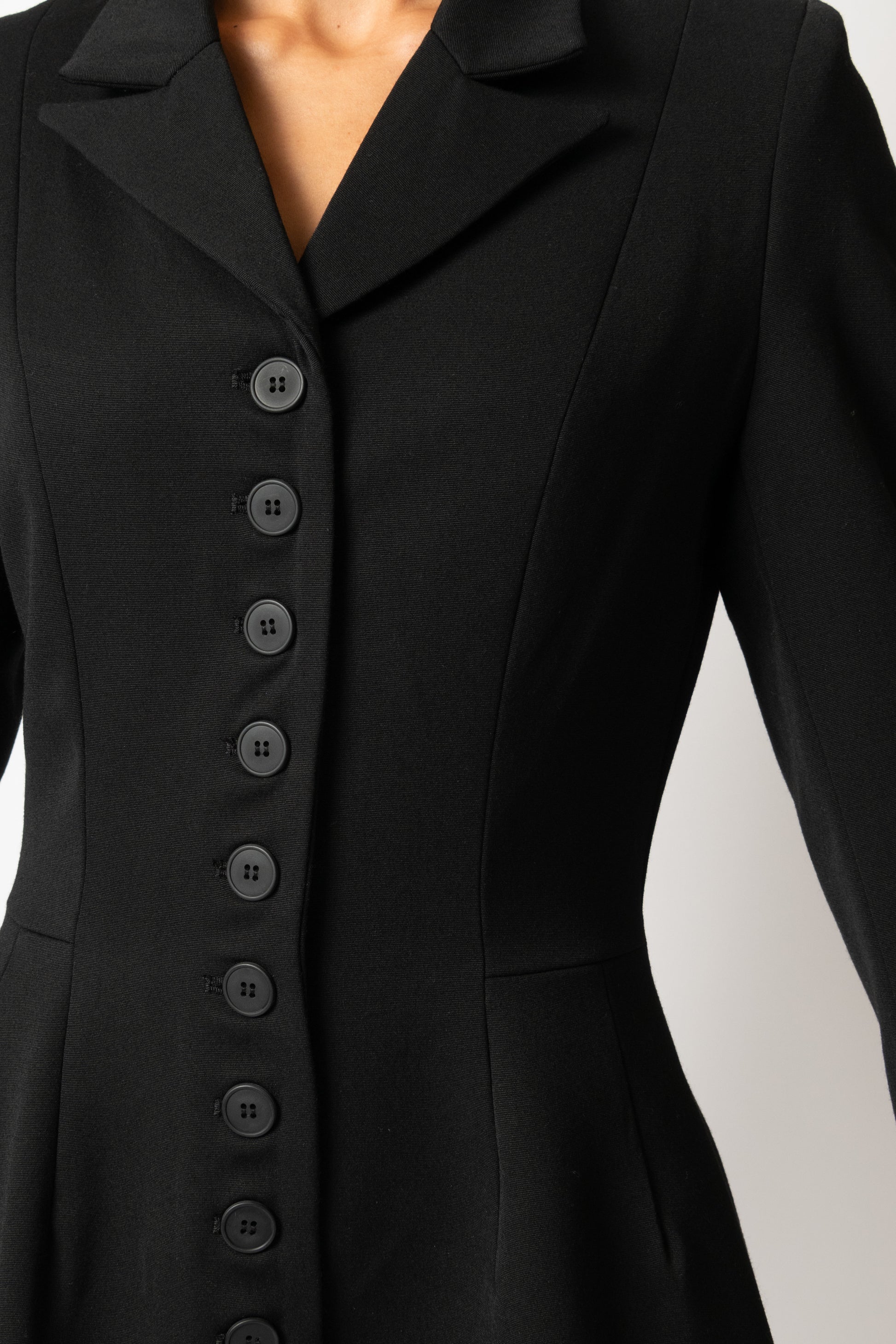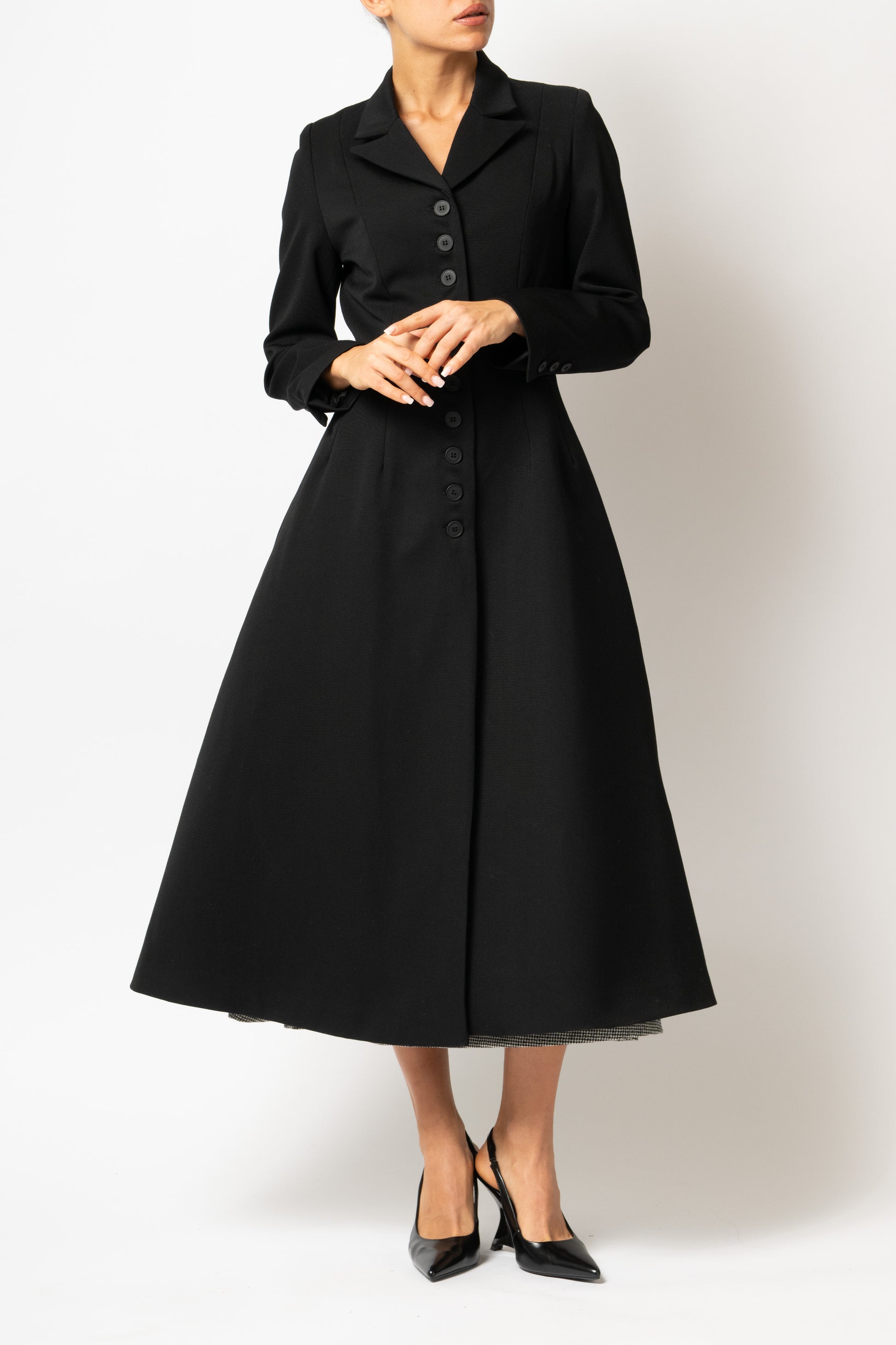 Palton Cambrat Tip Clopot din Stofa de Lana, Negru