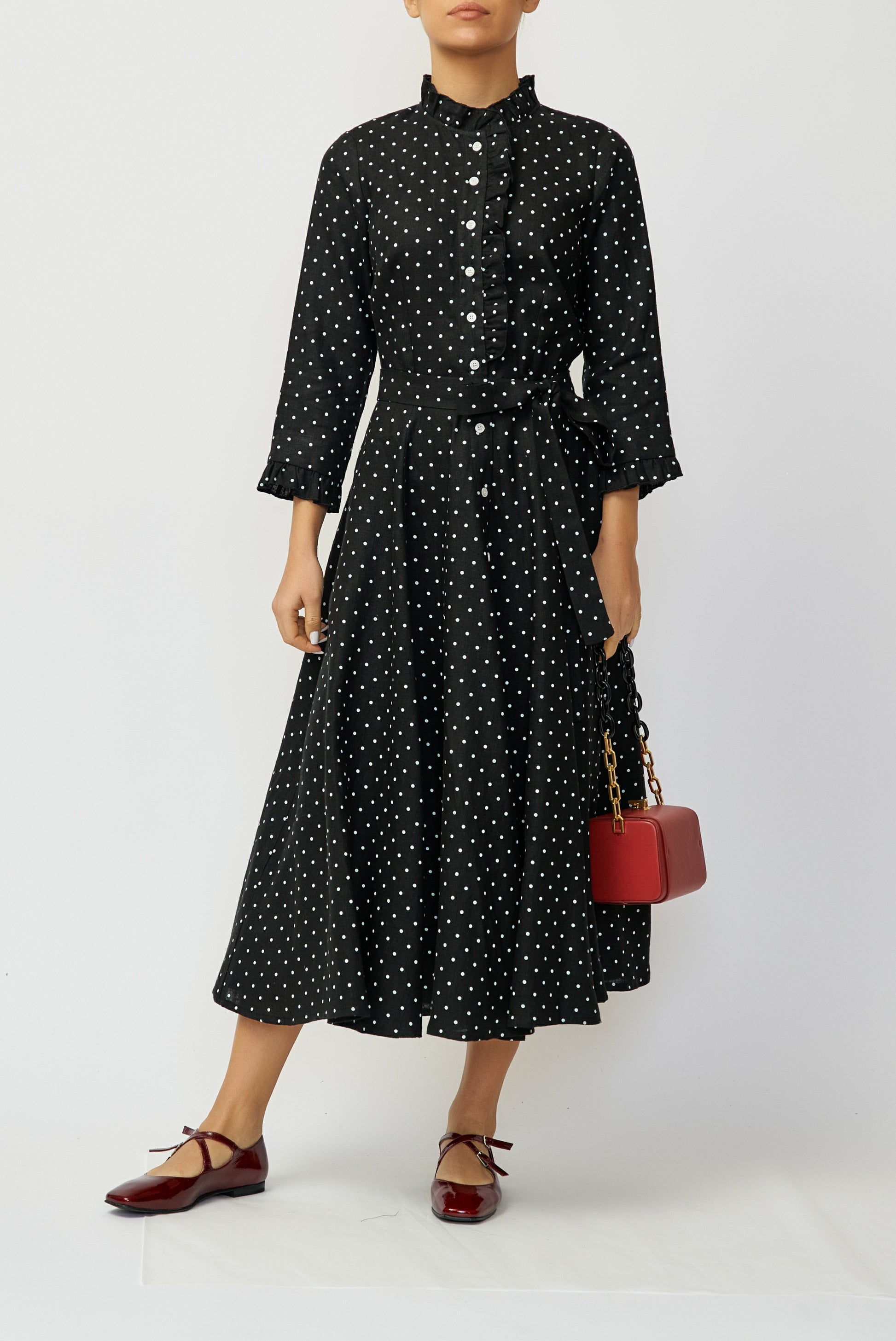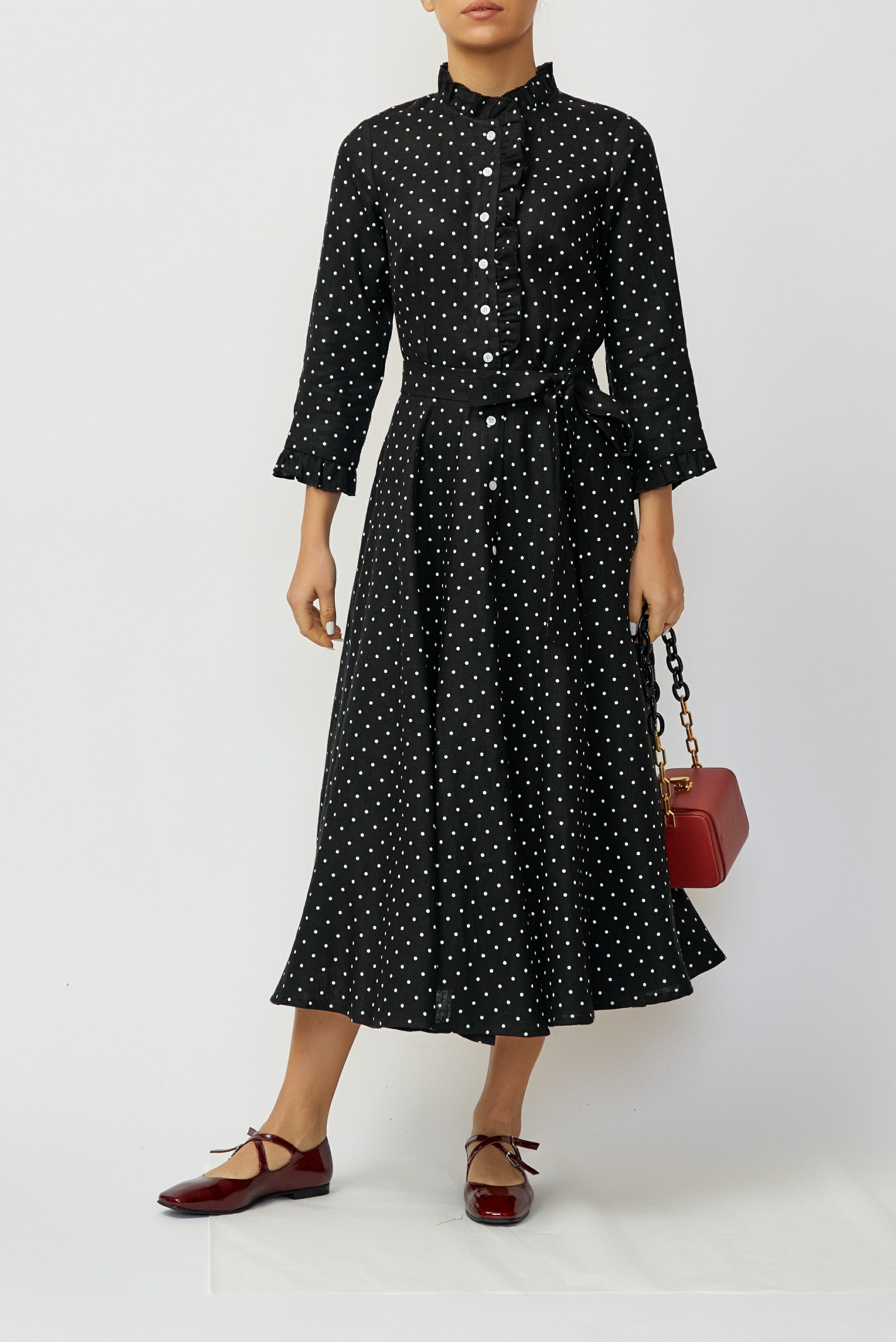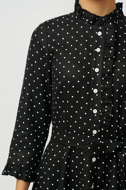 Rochie Camasa Midi din In, Neagra